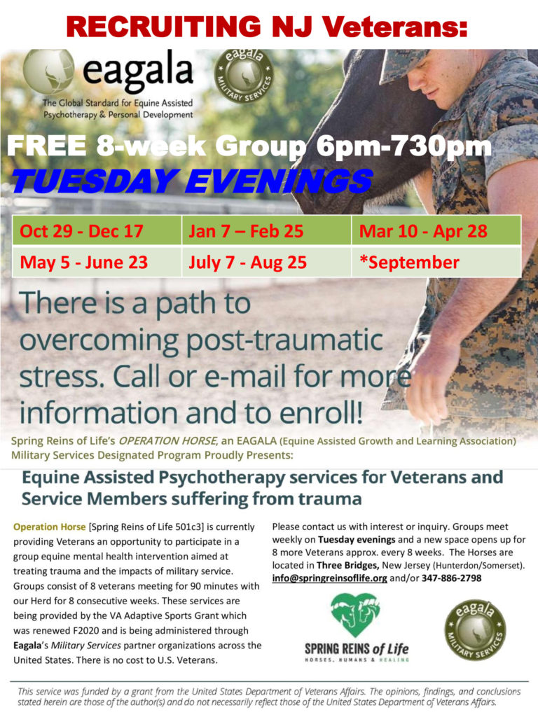Spring Reins of Life 501c3 is proud to represent the state of New Jersey as a certified “Military Services Provider” since 2014. We have been serving PTSD combat veterans since August 2012.